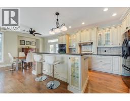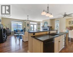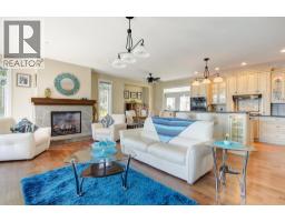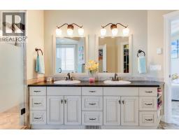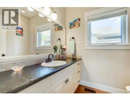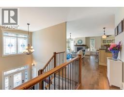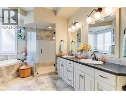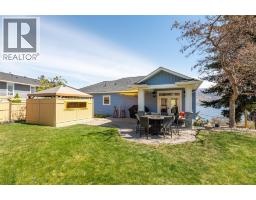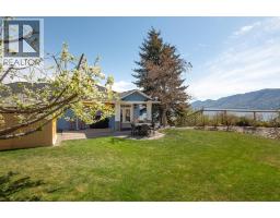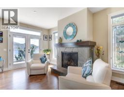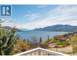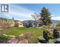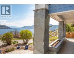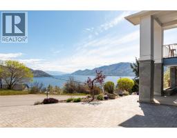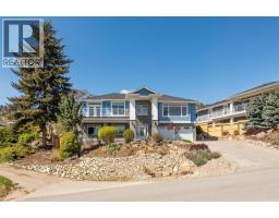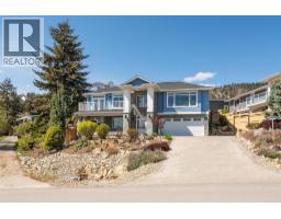 Lake Views from every location in this 2011 Custom Home offering 2447 sq.ft.(outside) of high end finishes. Enter through a 20ft high grand entrance highlighted with the sun scattering through the true lead glass windows above. Upstairs is an open concept with living and dining rooms around a custom kitchen with a large island, gas range and built-in wine fridge. Living room has an oversized gas fireplace with real stone. Carry the entertainment feel through the French doors onto the covered back patio surrounded by extensive professional landscaping and more lake views. Patio also links to a Hot Tub in a privacy Gazebo. The Primary Suite is complete with IKEA wardrobe system, a sitting area, wall size window with lake views. The ensuite has a glass shower, custom cabinets, corner soaker tub, separate toilet and heated floors. This amazing Master Suite ends in a huge walk-in closet with laundry chute. Downstairs are 3 good size bedrooms all with lake views and one full bathroom. The Garage has extra room for storage and a contains a nice sized work bench. The custom paver stone driveway gives way to the solid stone columns and stone face of the home. All the landscaping, gardens, trees and lawn are protected by a six-zone irrigation system. Home is situated perfectly to enjoy morning sun on one of the three front decks and evening sunsets in the hot tub. Don’t miss your chance to live in Peachland with its incredible shops, restaurants and small town water front charm. (id:26472)