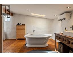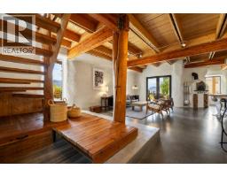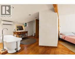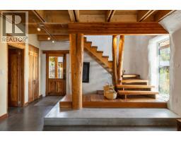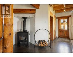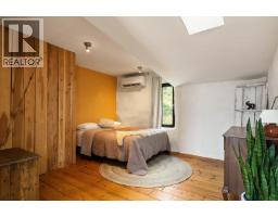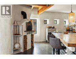 This one of a kind timber-frame straw-bale home blends architectural beauty with exceptional energy efficiency. Thoughtfully designed and extensively upgraded, this residence delivers remarkable heat retention and year round comfort with extremely low operating costs, averaging just three cords of wood annually for heating. The home features a Blaze King wood stove with long burn times, hydronic in floor heating on the main level, dual heat pumps for heating and cooling, and high performance tilt turn Innotech windows and doors. The ICF concrete slab, 18 inch straw bale walls, and reclaimed wood flooring naturally regulate temperature throughout the home, with upper level floors back beveled to allow warm air circulation. The kitchen showcases a wood fired Forno pizza oven, massive eat up island and apron sink, while the spa inspired main bathroom offers a 2025 tiled walk in shower, bidet, and in floor heat. Outdoors you will find a large covered patio, solar heated saltwater lap pool, veranda, newer fencing with custom metal caps, and a durable metal accented exterior. Major updates include a 2018 roof and eavestroughs, 2019 Duradeck upper deck, 2024 heat pump, and sewer brought onto the property with connection at the lot line. The property may support a future double garage with carriage house, buyer to verify. Built by the original owner with a passion for sustainable living, this is a rare opportunity to own a highly efficient and beautifully crafted home. (id:26472)