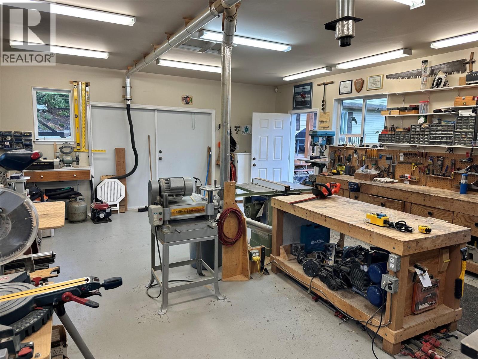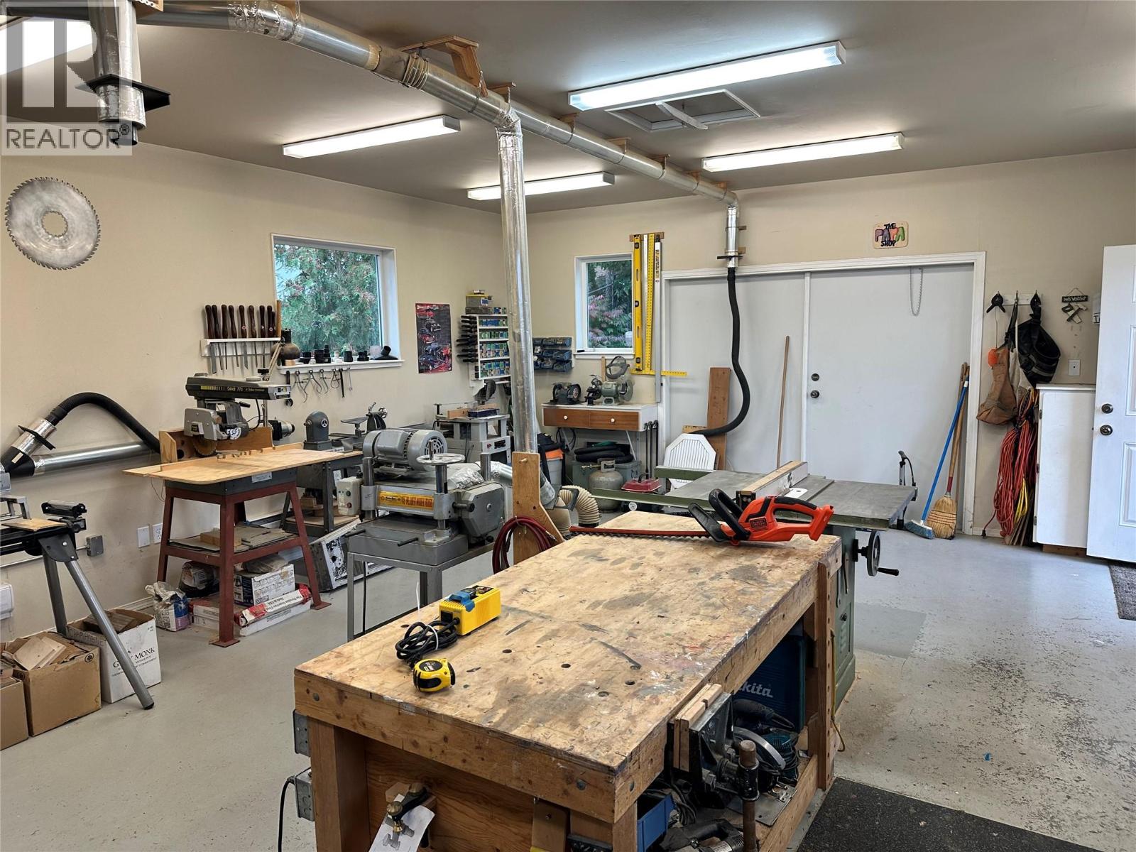 This charming family home offers a well-designed layout with pride of ownership evident throughout. It features 3 bedrooms and 3 bathrooms, located on a quiet dead-end road just a short drive from downtown Vernon. The property includes a unique garden shed an impressive 560 sq.ft. insulated woodworking shop, perfect for hobbyists or professionals, with the owner open to selling the equipment and tools. Main highlights: Primary bedroom on main floor with walk-through ensuite. Modern kitchen with stainless steel appliances, large island, and formal dining area. Cozy living room with gas fireplace. Laundry room adjacent to a half bathroom and electric sauna. Upstairs with two bedrooms, a shared bathroom, and a versatile space for a desk or small library. Beautiful covered deck overlooking a manicured backyard with garden shed and views of Swan Lake, city, and mountains. Large double garage, RV parking, and additional guest parking. This home seamlessly combines comfort, functionality, and scenic views, making it a wonderful place for family living, entertaining, and hobbies. (id:26472)