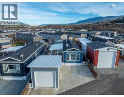Welcome to lakeside living just minutes from the city. This well-kept 2021 one bedroom, one bathroom mobile home offers a comfortable, functional layout in a peaceful park setting with low pad rental fees. Modern design and colours the home features air conditioning, premium appliances, Covered patio and large back yard shed for hobbies and storage plus a Detached garage. Enjoy the best of the Okanagan life at a great price with private beach access to Okanagan Lake just steps away, complete with a dock, shaded picnic area, and a beautiful willow tree—perfect for swimming, paddleboarding, or simply unwinding by the water. Golfers will appreciate being less than five minutes to the golf course, while downtown Vernon is only a 10-minute drive, keeping shopping, dining, and services close at hand. Outside, the property truly stands out with a large covered patio, separate garage, and a large outbuilding ideal for storage, a workshop, hobbies, or potential future finishing to suit your needs. The park offers additional RV or boat storage for your toys as well. Be in a location that’s hard to beat—this is a rare opportunity to enjoy the Okanagan lifestyle without the Okanagan price tag. Check out the Matterport Virtual tour and property video! (id:26472)