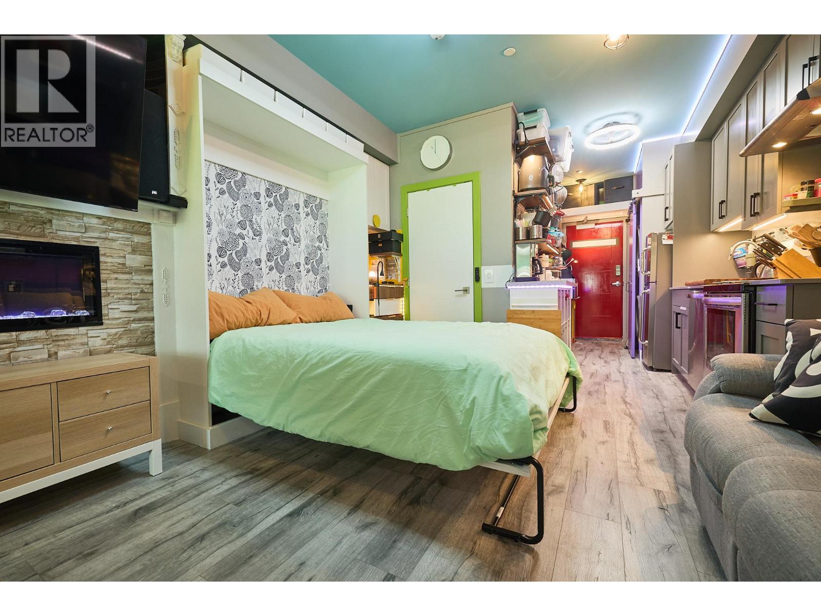 $142.91 Monthly**DUTCH AUCTION** - Property Reduced $5k A Week Until Offer** Welcome to Fairway10, the newest and most exciting condo development at The Dunes Golf Course, nestled in the tranquil community of Westsyde. This west-facing studio is the best-priced unit in the building, making it an outstanding choice for first-time buyers or a smart addition to an investment portfolio. Designed with functionality and style in mind, the open floor plan includes a beautiful Murphy bed, allowing you to maximize space without sacrificing comfort. A modern colour palette, stainless steel appliances, tiled backsplash, and sleek electric fireplace bring a contemporary feel, while the expansive covered deck offers privacy and inspiring unobstructed views of the golf course and surrounding mountains. Additional features of the condo include two storage closets, in-suite laundry, air conditioning, window coverings, and one surface parking stall. The 4-piece bathroom is finished with clean, modern details, completing the home’s polished and eclectic look. Fairway10 offers low-maintenance living with low strata fees and is both pet-friendly and rental-friendly, giving you flexibility and peace of mind. It’s the perfect home for your lifestyle now, with excellent investment potential for the future. Whether you’re a first-time buyer looking to get into the market, an investor seeking a turn-key rental, or someone who simply wants to enjoy the golf course lifestyle, this property offers unmatched value (id:26472)