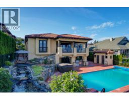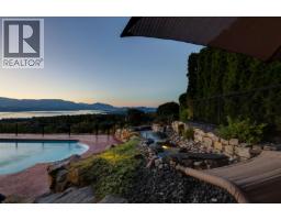 Timeless Upper Mission home with custom finishes throughout, a resort-style backyard and spectacular unobstructed Okanagan Lake views. This home boasts a seamless integration of architectural landscaping and interior design. Open concept main level. Large gourmet kitchen with adjoining dining area, double islands, professional appliances, butler's pantry and formal dining room. Off the formal dining area enjoy access to spacious patio perfect for enjoying. In the living room enjoy the cozy ambiance from the gas fireplace. Sliding doors lead to a huge lake view covered patio with a fan. Main floor primary with a Romeo and Juliet balcony, luxurious ensuite with a soaking tub and glass shower plus a walk-in closet. One additional bed with an ensuite is located on the main level. The lower level was designed for entertaining with a full bar, home theatre, 3 beds (2 with ensuites), a living area with a gas fireplace and sliding doors that lead to a remarkable backyard. The backyard retreat offers an outdoor kitchen, a pool, hot tub and a pool house with spectacular lake views. For those seeking a beautiful home in the Upper Mission near great schools, recreation trails, and shores of Okanagan Lake this is an incredible opportunity. (id:26472)