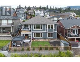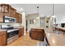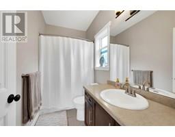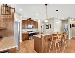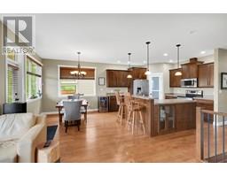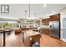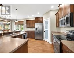 NEW PRICE-This stunning 5-bedroom, 3-bathroom 2010 build is located in the highly sought-after Sahali neighbourhood, backing onto green space and offering sweeping views from both levels. The bright, open-concept main floor features high ceilings and large windows that fill the space with natural light. The well-appointed kitchen includes a large island with spaces for seating as well as a pantry for extra storage. The kitchen flows seamlessly into the dining and living areas, creating a warm and welcoming space for gatherings. Step out onto the covered deck from the dining area to enjoy the peaceful surroundings and gorgeous views—ideal for year-round enjoyment. The main level includes three bedrooms, a 4-piece bathroom, a conveniently situated laundry room with access from the garage entry, and a spacious primary suite complete with a walk-in closet and 4-piece ensuite. Downstairs, you'll find two more bedrooms (one with a walk-in closet), a full 4-piece bathroom, a large den or flex area, and a storage space ready for your personal touch—whether it's a home gym, media room, or additional flex space, the choice is yours. The lower level entry walks out onto a covered patio and a fully xeriscaped, low-maintenance yard. Additional features include a double-car garage and beautifully maintained landscaping. With its modern conveniences, and unbeatable location near schools, public transportation and amenities, this home truly has it all. (id:26472)
