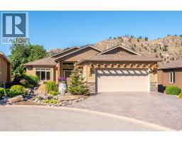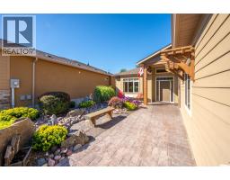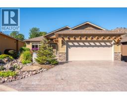 $175 MonthlyArbour Crest is a sought-after 55+ gated community offering carefree, lock-and-leave living in a beautifully maintained setting. This stylish 2-bedroom plus den rancher features easy one-level living with vaulted ceilings and a bright, open-concept design. The kitchen boasts quartz countertops, a large island, and flows seamlessly into the dining and living areas, complete with a cozy gas fireplace—perfect for relaxed entertaining. The primary suite is a private retreat with French doors to the backyard, walk-in closet, double vanities, and walk-in shower. A flexible den offers space for a home office, TV room, or potential third bedroom, while the guest bedroom enjoys its own private wing with full bath—ideal for visitors. Outdoor lovers will enjoy the low-maintenance xeriscape landscaping including a dry riverbed feature, a spacious stamped concrete patio for outdoor living or a hot tub (wiring and pad ready to go), tasteful landscaped pie shaped lot (one of the larger lots) with private backyard. The generous driveway offers parking for multiple cars while use of the double garage for cars or storage give you plenty of flexibility. With low strata fees and a prime location just minutes from golf courses, shopping, lake access, and downtown Oliver, this move-in-ready home is perfect for active retirement living with peace of mind and convenience. (id:26472)