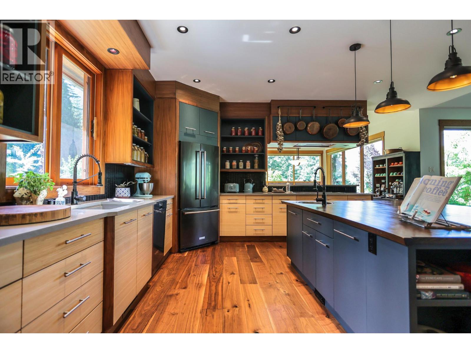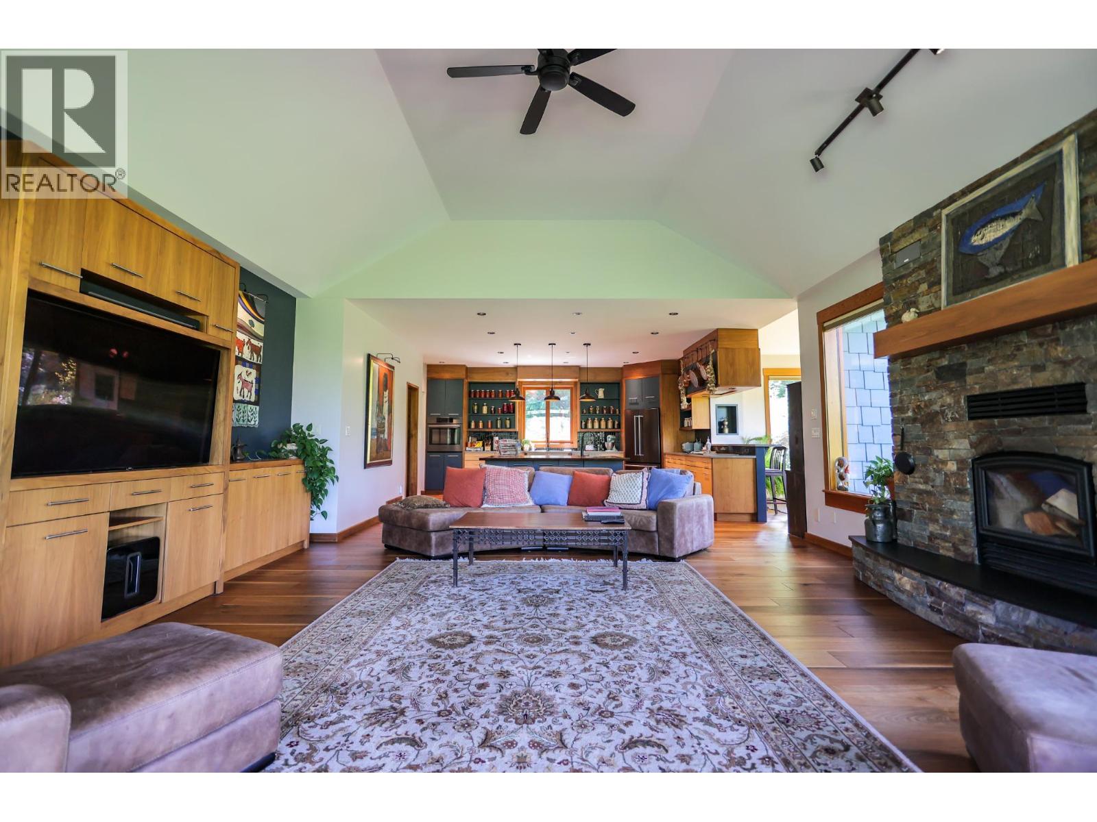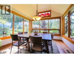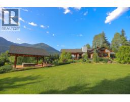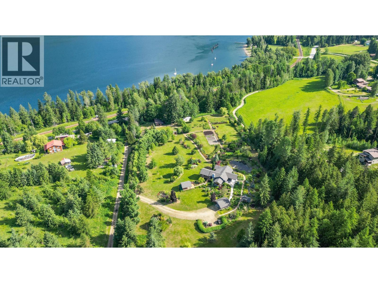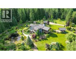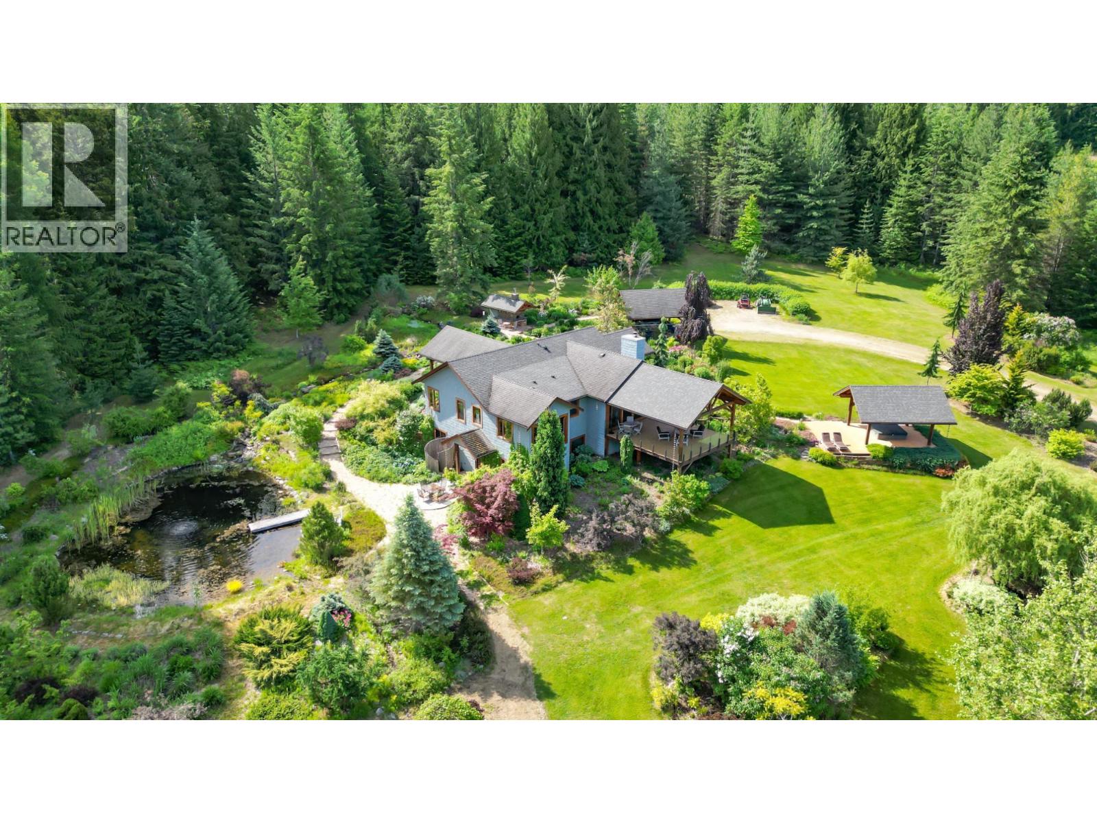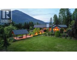 Step into the realm of luxury and natural splendor at 6890 Harrop-Procter. This meticulously designed home, originally crafted in 2008 and meticulously renovated in 2015 and 2020, offers a fusion of contemporary elegance and timeless charm. From the moment you enter, you're greeted by the warmth of hand-scraped Walnut floors that seamlessly blending with Maple and Walnut cabinets throughout. Floor-to-ceiling windows capture breathtaking views of the lake and mountains, while post-and-beam structures frame outdoor living spaces equipped with Italian pizza ovens and high-end decks. Inside, every detail is curated for comfort and style. Two laundry rooms, in-floor heating, and vaulted ceilings ensure a luxurious lifestyle. The lower floor, with its separate entrance, presents a versatile space ideal for a B&B setup, while the main floor showcases a chef's kitchen adorned with Mile appliances and quartz countertops. Outside, the property unfolds across 51.8 acres of manicured landscape, boasting fenced pastures, a stream-fed pond with a charming dock, and lush forests dotted with cedar, Douglas fir, and White pine. The opportunity to host up to 10 events annually, from weddings to social events. Additional amenities include rustic Bohemian outdoor washrooms, a double car garage with workshop area and single car carport with the potential for expansion or development. 6890 Harrop-Procter, a perfect property for a Homestead, where the beauty of nature is your everyday backdrop. (id:26472)