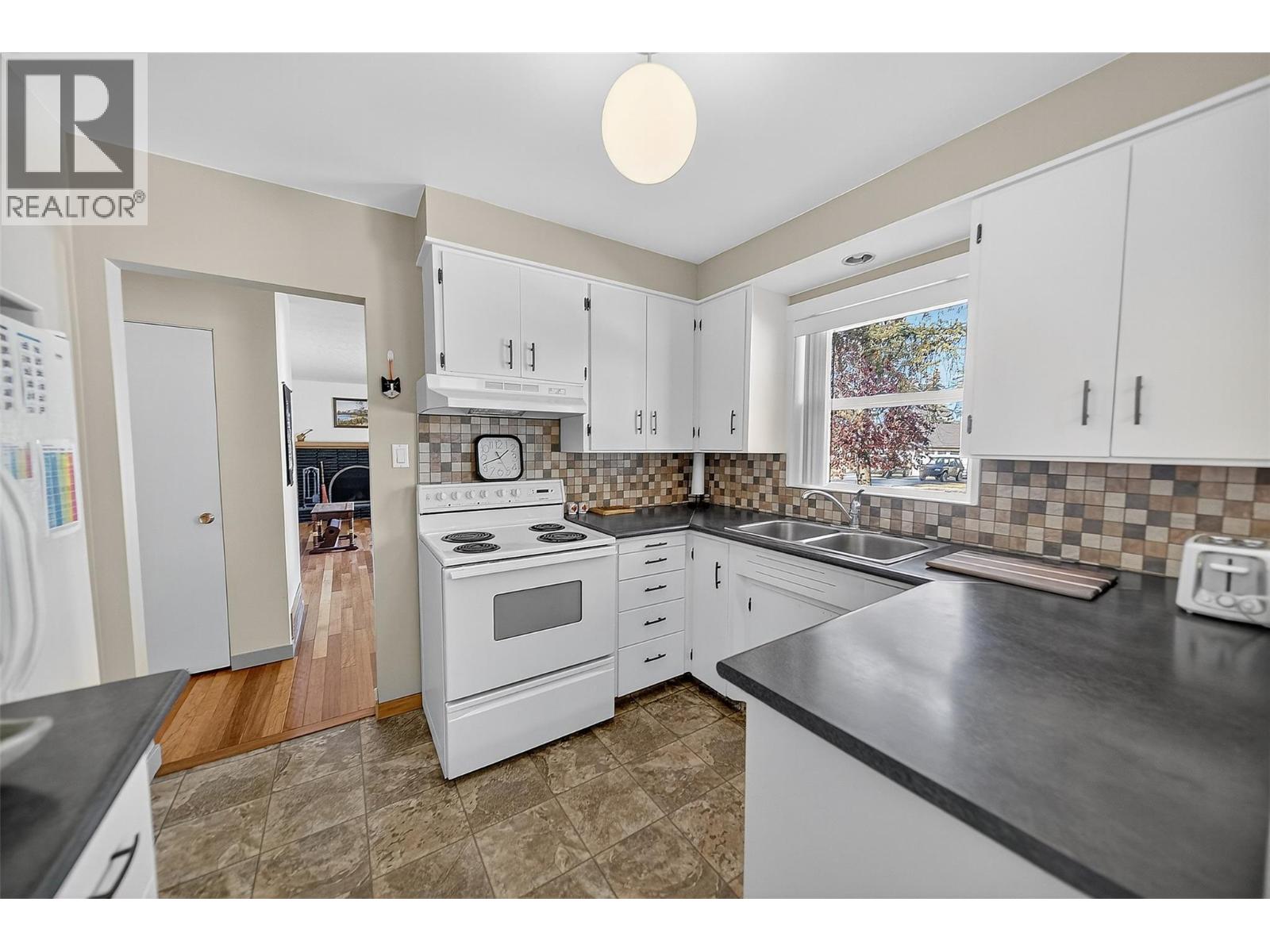 Charming bungalow in Cranbrook’s sought-after Gyro Park area. This 4-bed, 2-bath home sits on 1½ lots with mountain views and a private, fully fenced backyard. The main level offers bright, comfortable living spaces and a functional kitchen with easy access to the outdoors. The walk-out basement includes one bedroom, a full bathroom, laundry, and ample storage. Enjoy cozy winters with a WETT-certified wood stove and peace of mind from recent updates including a new furnace (2021), roof (2019), and eight replaced windows. Outside, relax around the firepit, tend to your garden in the sweet greenhouse, or make use of the detached garage with back lane access. Ideally located near Gyro Park, schools, and transit — a perfect blend of comfort, convenience, and character. (id:26472)