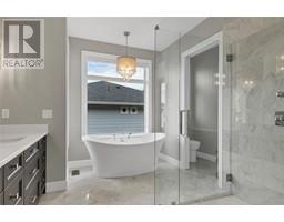 Welcome to a true masterpiece! Situated above the shores of Okanagan Lake in sought-after Lakeridge Estates, this 3700sq/ft, 5 bed Heartwood Homes crafted Rancher w/ walkout basement is sure to please those looking for luxury, practicality, & maintenance-free living. Stepping through 9’ tall double door entrance, you’ll immediately notice extraordinary attention to detail. From the elevated living room ceiling w/ beam detail to the sleek tiled fireplace surround; hand-selected quartz kitchen countertops w/ extra-deep edge; tiling perfection throughout the spa-like ensuite; epoxy finished garage floors; stamped concrete on spacious upper deck; even round handcrafted cabinetry in walk-in closet! It’s not only QUALITY that draws one to this lovely property, it’s also DESIGN, emphasizing easy flow from one living space to the next. Whether entertaining in the welcoming living room, preparing & enjoying meals in the kitchen w/ convenient butler’s pantry & dining room w/ floor-to-ceiling windows, or stepping out through double glass patio doors incorporating your huge covered deck area into the living space, where you can take in scenic lake &valley views. And finally, w/ a large 3 car garage for toy and car storage; EV power; a legal self-contained one-bedroom suite; extra RV parking w/ sewer, water & power; low-maintenance, easy-access yard; & tons of parking space, its all here. Looking for a high-quality, well-appointed, easy living home, this is one for you! (id:26472)