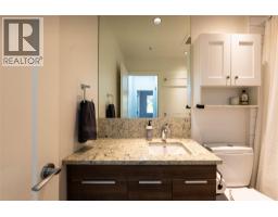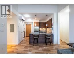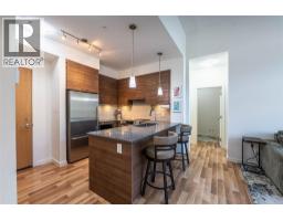 Welcome to the highly sought-after Nelson Commons at 710 Vernon St, where this immaculate two-bedroom plus den, two-bathroom unit offers the perfect blend of modern convenience and sophisticated downsizing. Situated on the top floor, you'll enjoy the peace and quiet of having no one living above you, a premium feature that elevates this unit above the rest and allows for overheight celings in the main living area. Built in 2016, the 868 square foot home features an open-concept living space flooded with natural light, ideal for entertaining or quiet relaxation. The kitchen boasts sleek stainless steel appliances and flows seamlessly into the main area, while the private balcony provides a tranquil outdoor retreat with a dedicated natural gas hookup for easy, year-round grilling. The versatile den is perfect for a home office, hobby room, or storage. Practicality meets luxury with in-unit laundry, a secure underground parking stall, and a private storage locker. The star feature is the unbeatable location: step outside and you are within a single block of a major grocery store, pharmacy, medical clinic and restaurants, dramatically simplifying daily errands and offering an unparalleled walkable urban lifestyle. Experience the ultimate in comfort and quality in a building that sets the benchmark for contemporary living in Nelson. (id:26472)