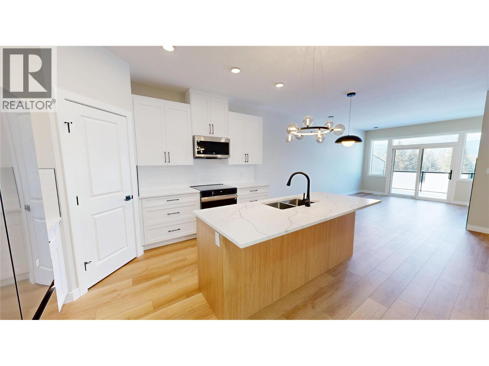 7114 Morgan Lane is a brand new home located in Elk Park Ranch on the north end of Radium Hot Springs. The price includes 5% GST and offers fee-simple ownership, over 2,300 sq. ft. of living space with 4 bedrooms/3 full bathrooms. The home suits families, downsizers, or recreation buyers seeking spacious and modern living. Key features include, 9 foot ceilings on the main level, black aluminum clad Lux Windows, James Hardie cement siding, double-car garage (fits a F150 truck) which is insulated, drywalled + painted, ICF CONCRETE  PARTY WALL for enhanced soundproofing and energy efficiency, kitchen cabinets in white chantilly lace shaker doors, wood grain island + white quartz countertops, with modern white tile backsplash, Samsung stainless steel appliance package, black hardware on doors and plumbing fixtures for a contemporary aesthetic.  The convenient, main floor laundry room with an LG washer/dryer,  heated tile floors in the ensuite,  Carrier electric forced-air furnace with cold climate heat pump, Continental propane gas fireplace with modern tile finishing in the living room, front west-facing pressure treated deck with glass railings with amazing views of the Purcell Mountains and a rear pressure-treated deck overlooking green space and offering unobstructed Rocky Mountain views. The craftsmanship and finishes throughout the home inside and out are sure to impress even the most discerning buyer. Landscaping included in price to be completed in spring 2026. (id:26472)