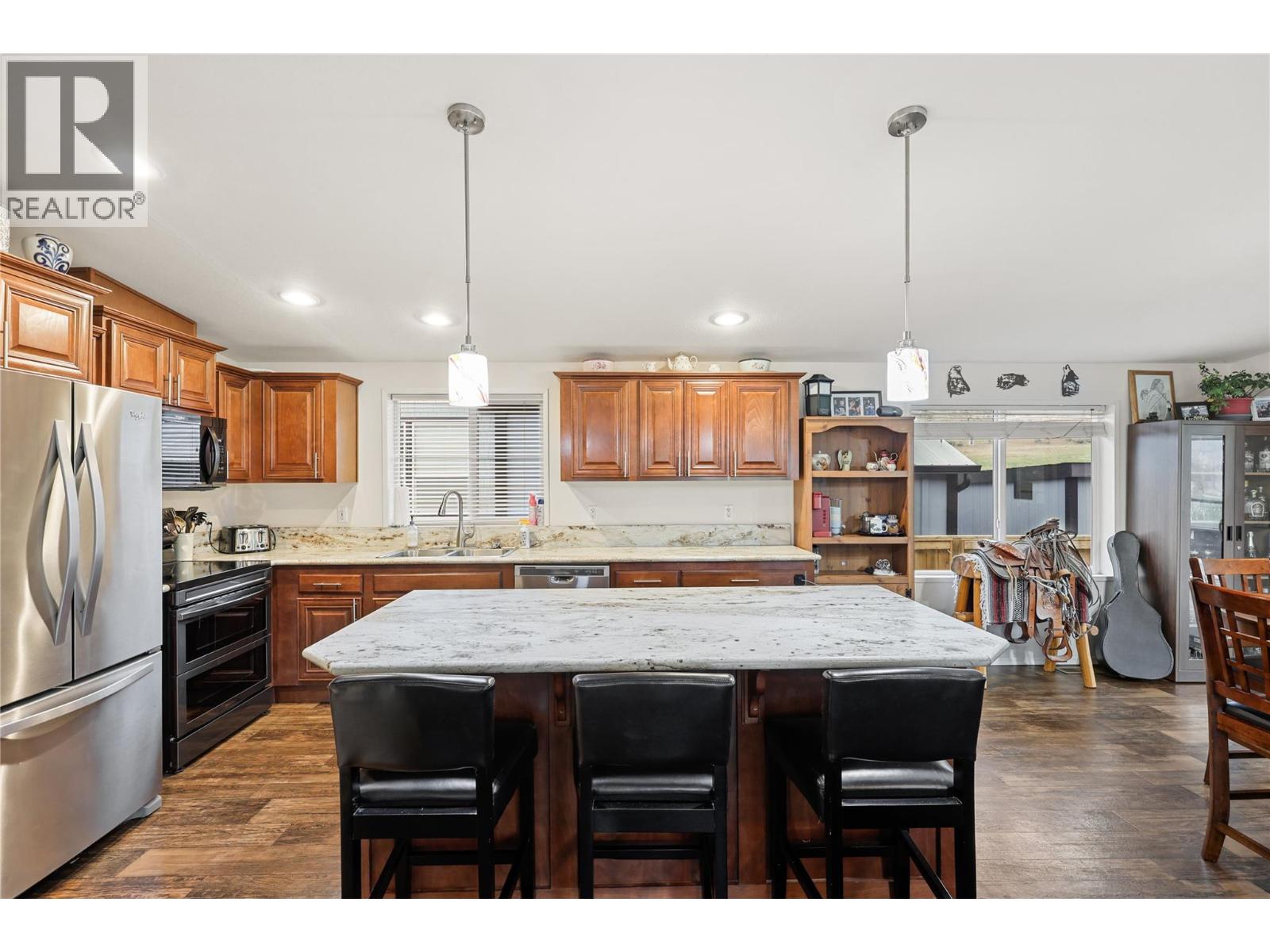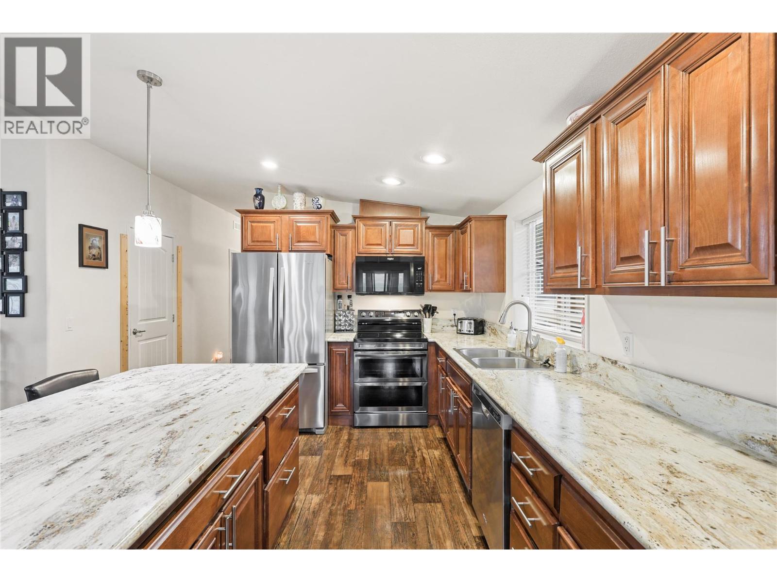 $410 MonthlyThis amazing home was built in 2015 and is located in the desirable complex of South Bend Estates, within walking distance to hiking trails/paths and is just minutes from downtown Kamloops! Perfect for first time home buyers or for those who are looking to downsize. Featuring 1,624 sq ft of indoor living space, an open floor-plan with vaulted ceilings, 3 large Bedrooms all with walk-in closets and 2 full bathrooms which includes the huge 5pc master ensuite with soaker tub! The spacious kitchen offers a pantry, an island, and is open to the large dining area and living room with access to the covered/enclosed patio! The yard is fully fenced and very private with cedars, and raised garden boxes, wrap around deck, and covered sitting area! Other features include workshop/shed, C/Air, and Lots of Parking, Pets allowed with restrictions. New Hot water tank. No rentals allowed. Pad rent of $450/mo includes water, sewer, garbage, and snow removal. Measurements are pulled from MHR. (id:26472)