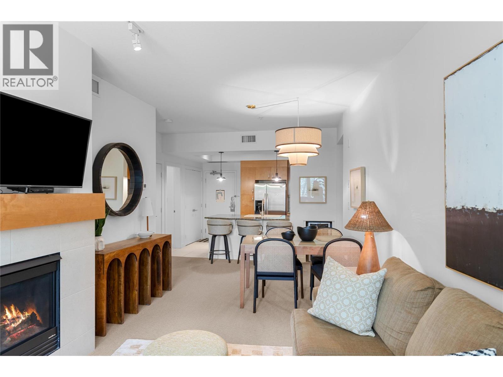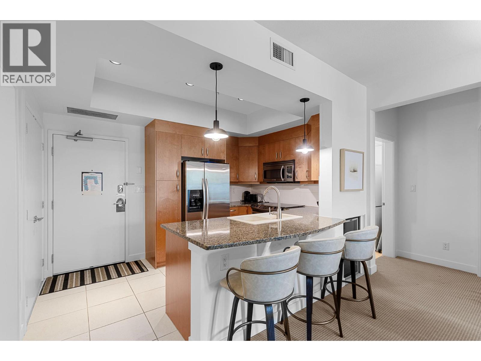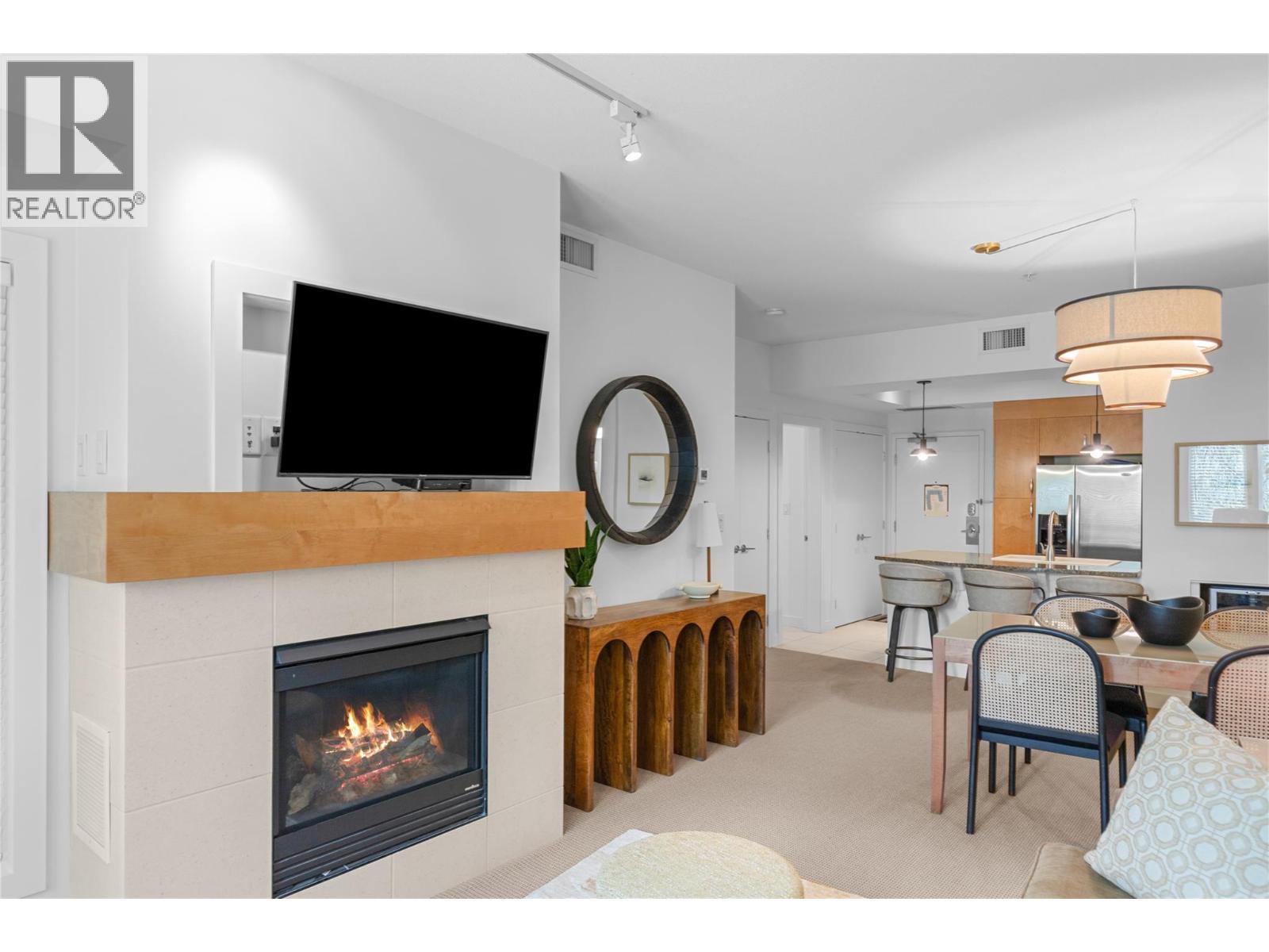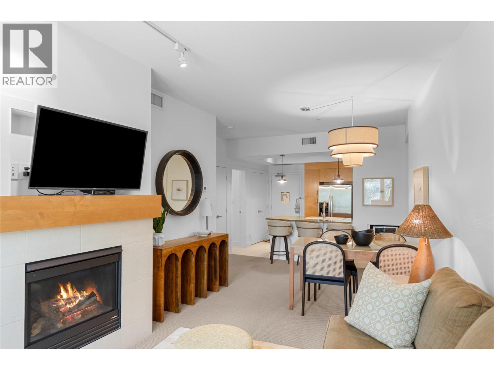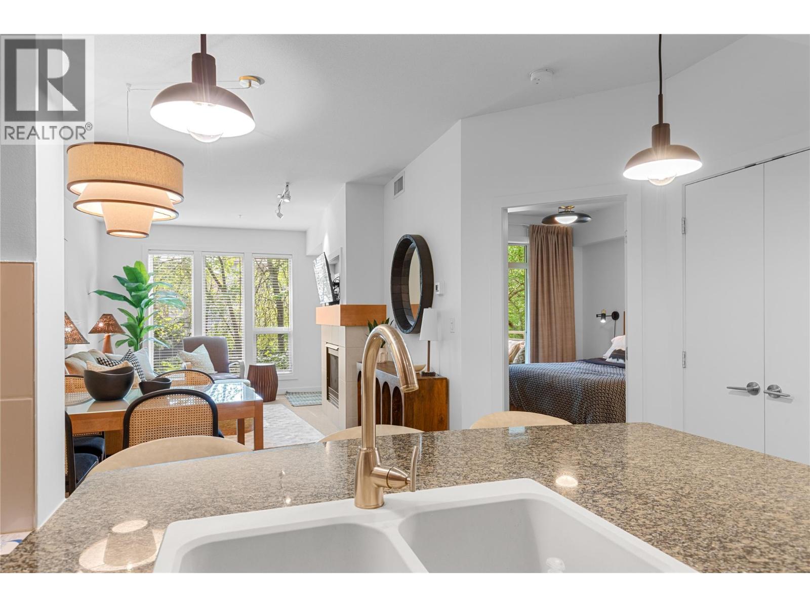 $725.27 MonthlyDiscover the ultimate Okanagan lakeside lifestyle with this beautifully appointed 2 bedroom, 2 bathroom ground floor condo at the prestigious Strand Lakeside Resort. Immaculately maintained, this luxury residence offers seamless turnkey living. Fully furnished with interior designer appointed updates and furnishing. Upgrades include fresh paint, new light fixtures, and bathroom fixtures. With an elegant open concept layout featuring rich wood cabinetry, granite countertops, stainless steel appliances, and a dedicated wine fridge. The cozy gas fireplace adds warmth and charm, with a private deck perfect for relaxation, and BBQ's. On the ravine side of the building, nice and quiet! shows 10/10. This unit allows full time living, a vacation escape, or use as a high performing investment property! The Strand offers resort style amenities including an outdoor pool, hot tub, secure underground parking, and an impressive 370 feet of private lakeshore, and beautifully landscaped grounds. Situated just minutes from world class golf courses, top tier schools, pickleball courts, and the renowned SilverStar Mountain Resort, every lifestyle desire is within easy reach. Flexible rental options, from full time occupancy to short term weekly stays enhance this condo's value as both a personal haven and a lucrative investment. Don’t miss this rare opportunity to embrace the lakefront experience at a fraction of the lakeshore price. (id:26472)