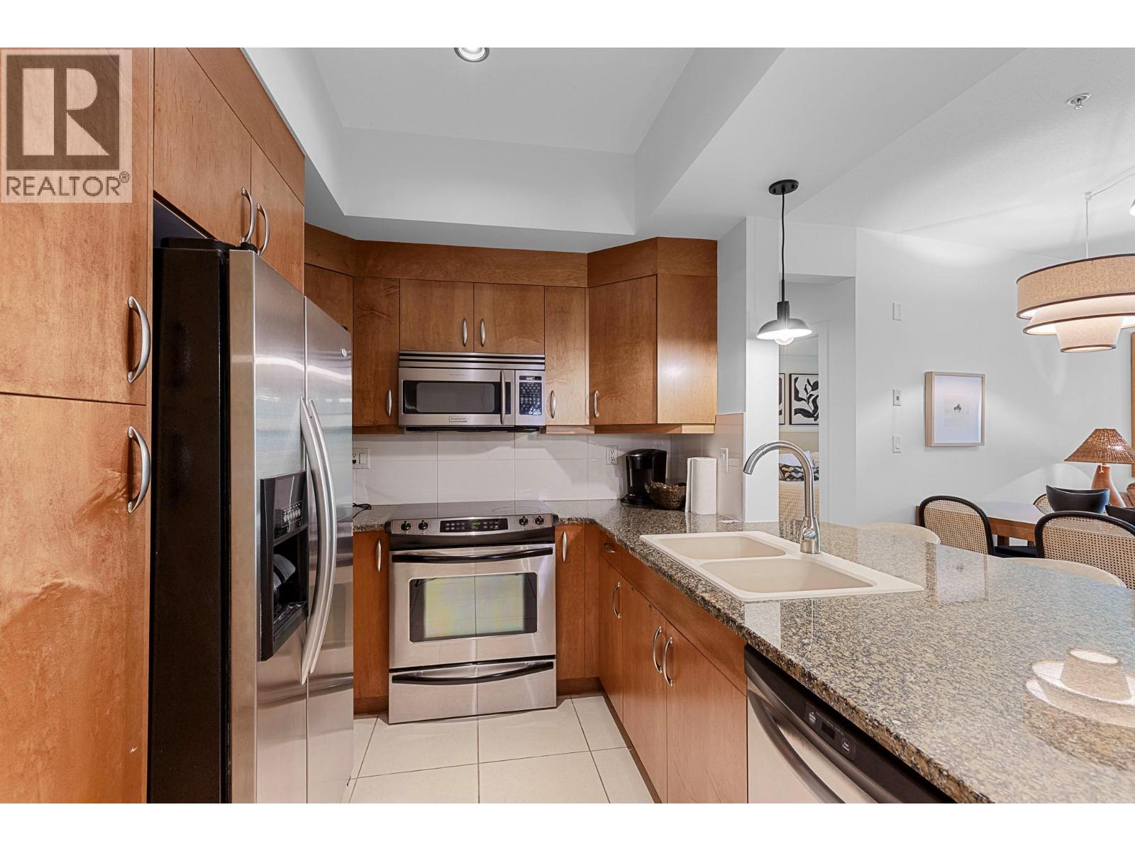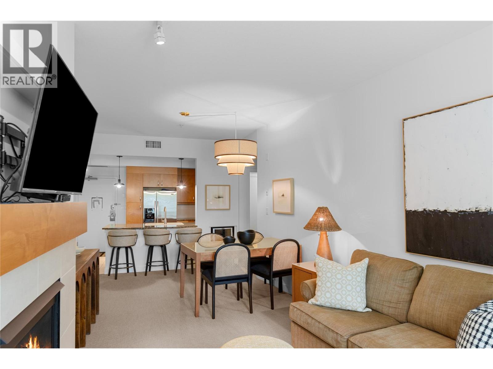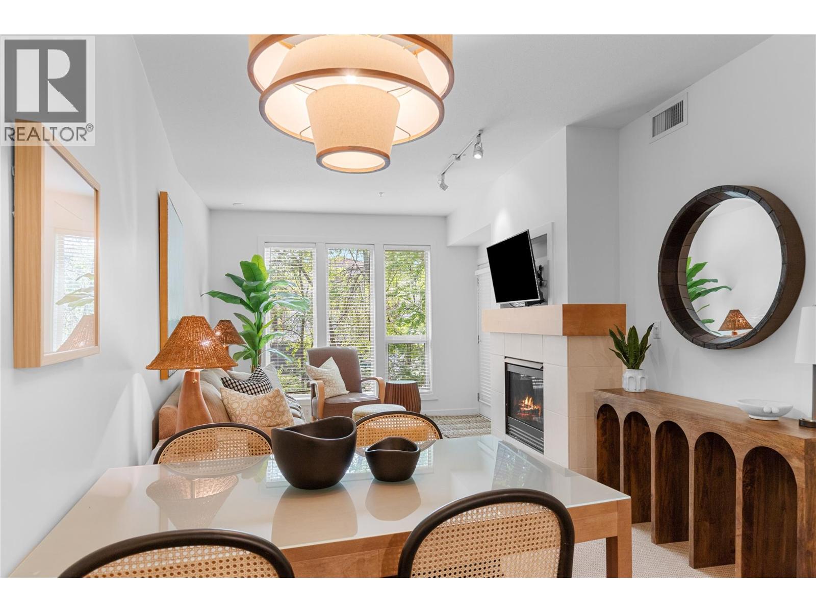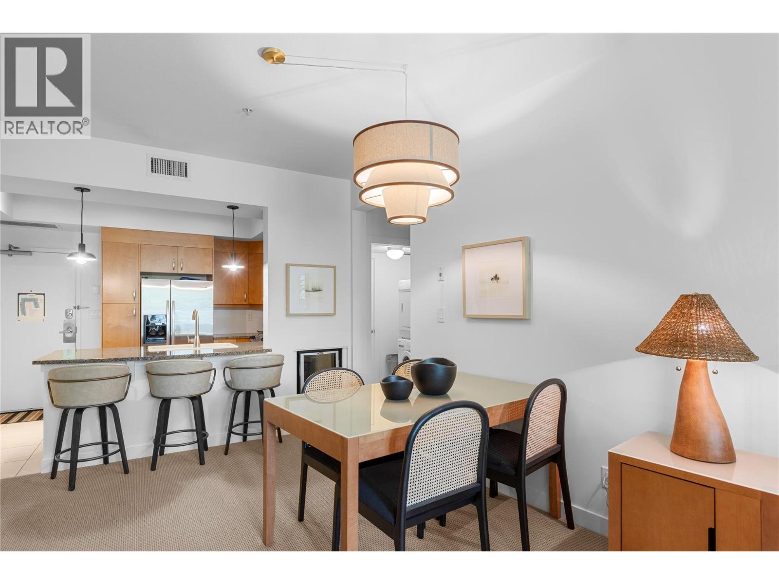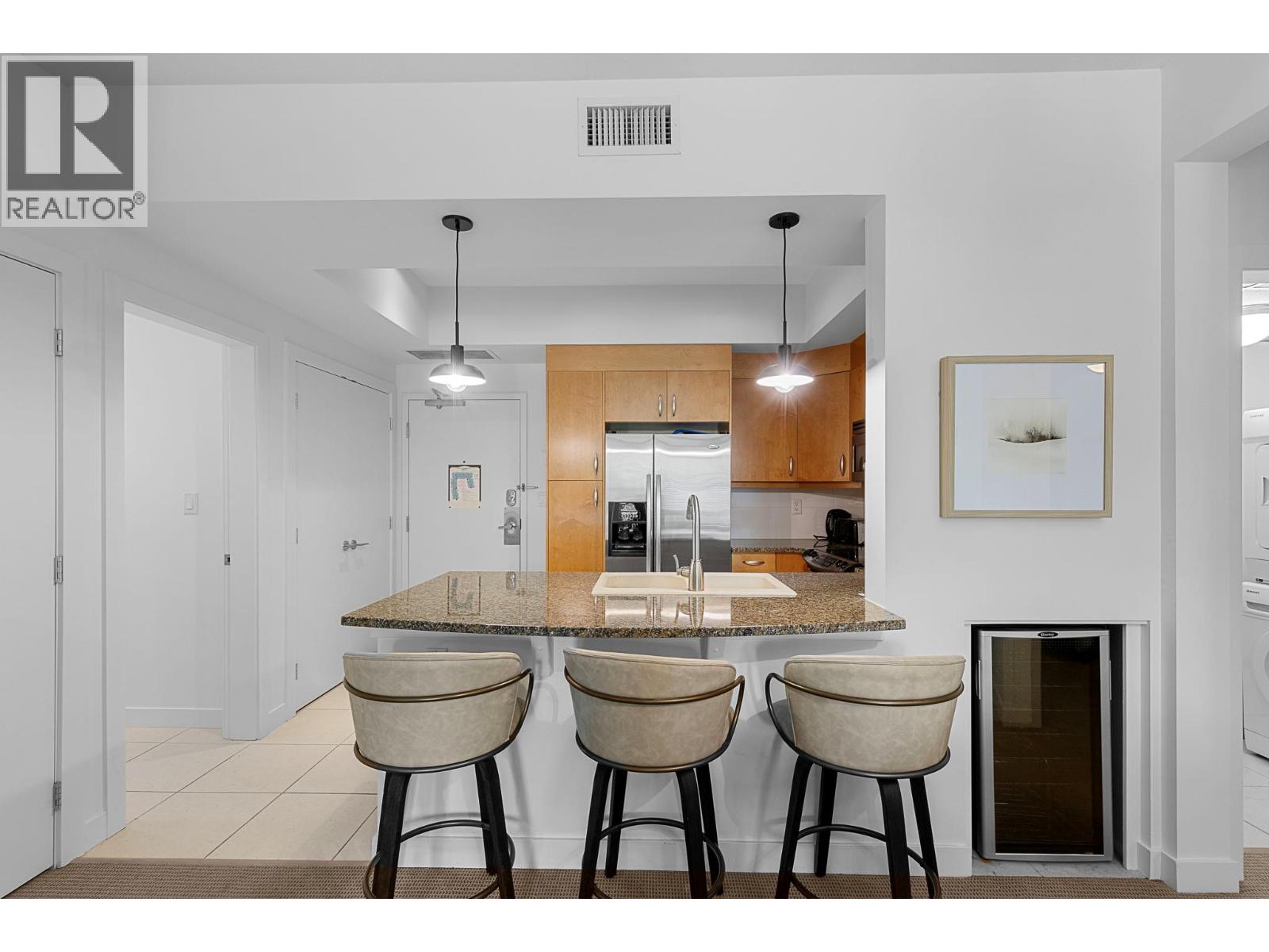 $725.27 MonthlyDiscover the ultimate Okanagan lakeside lifestyle with this beautifully appointed 2 bedroom, 2 bathroom ground floor condo at the prestigious Strand Lakeside Resort. Immaculately maintained, this luxury residence offers seamless turnkey living. Fully furnished with interior designer appointed updates and furnishing. Upgrades include fresh paint, new light fixtures, and bathroom fixtures. With an elegant open concept layout featuring rich wood cabinetry, granite countertops, stainless steel appliances, and a dedicated wine fridge. The cozy gas fireplace adds warmth and charm, with a private deck perfect for relaxation, and BBQ's. On the ravine side of the building, nice and quiet! shows 10/10. This unit allows full time living, a vacation escape, or use as a high performing investment property! The Strand offers resort style amenities including an outdoor pool, hot tub, secure underground parking, and an impressive 370 feet of private lakeshore, and beautifully landscaped grounds. Situated just minutes from world class golf courses, top tier schools, pickleball courts, and the renowned SilverStar Mountain Resort, every lifestyle desire is within easy reach. Flexible rental options, from full time occupancy to short term weekly stays enhance this condo's value as both a personal haven and a lucrative investment. Don’t miss this rare opportunity to embrace the lakefront experience at a fraction of the lakeshore price. (id:26472)