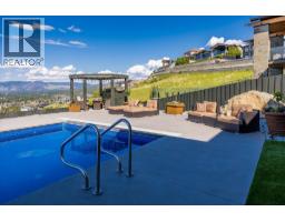 Step into elevated living in this beautifully re-imagined 5-bed + den, 4-bath residence, where luxury, comfort, and panoramic views converge. From the moment you arrive, the grand entry and soaring vaulted ceilings set the tone for a home designed to impress, while the chef’s kitchen, featuring premium appliances and a butler’s pantry, anchors the heart of the main level with style and function. Expansive windows frame breathtaking 180-degree vistas across the city of Kelowna and Okanagan Lake, creating an extraordinary backdrop for everyday living and entertaining. The primary retreat, privately positioned on the main floor, offers a serene escape complete with stunning lake views and a spa-inspired ensuite. Two additional spacious bedrooms upstairs offer comfort and privacy for family and guests. The walk-out lower level is an entertainer’s haven, thoughtfully designed with a refined whiskey tasting room, temperature-controlled wine cellar, sleek bar, generous recreation space, and a state-of-the-art theatre. Step outside to the private backyard and pool area, where the views become more spectacular and unforgettable. Completing this exceptional home are four garage spaces, including a double and tandem garage, with EV charging and abundant room for a boat or RV, along with extensive additional parking for guests. Every element of this residence blends elegance with practicality, offering an unparalleled lifestyle opportunity in one of Kelowna’s most desirable settings. (id:26472)