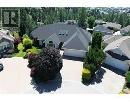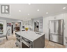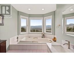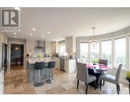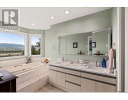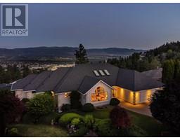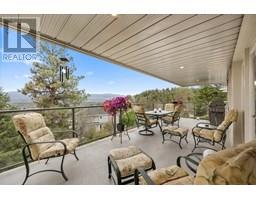 Set on a quiet cul-de-sac in the desirable Dilworth Mountain community, this spacious 4,799 sq. ft. walk-out rancher offers an exceptional blend of space, privacy, and panoramic views. Thoughtfully designed for main-level living, this immaculately maintained residence captures sweeping views of the valley, city, and surrounding mountains from nearly every principal room. The chef’s kitchen is both functional and elegant, appointed with granite countertops, soft-close cabinetry, premium KitchenAid appliances, and a charming bay-window breakfast nook. Seamless indoor-outdoor flow leads to a covered upper deck. The main floor also features a vaulted-ceiling family room with a gas fireplace, a formal dining area, a versatile office or bedroom, and a generously sized primary suite with a private 5-piece ensuite. The fully finished walk-out lower level extends the home’s appeal, offering two spacious bedrooms, a renovated bath, a large recreation room, and an impressive theatre with coffered ceilings and a private kitchenette. Outside, the covered lower patio with hot tub invites quiet relaxation, while the expansive, tiered backyard—complete with mature landscaping and underground irrigation—offers space for a future pool. Situated on a rare, oversized lot in one of Kelowna’s most coveted neighbourhoods, this home blends timeless comfort with boundless potential. Just minutes to downtown, top schools, golf, and trail networks—this is Dilworth living at its finest. (id:26472)
