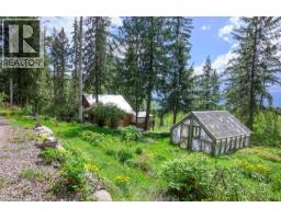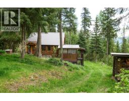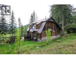Wonderful 1 bedroom, 2 bathroom log home tucked away in a private location on a 1 acre treed parcel of land only minutes to the town centre & recreation. This quaint log home offers a bright layout with the kitchen, dining room and living room on the main level with walk out access to the sun room, covered porch and sun deck. The upper level boast the primary bedroom with valley views featuring a newly renovated en-suite bathroom with tub and separate shower. The lower level is a walk out basement with laundry, bathroom & family room. Enjoy the private yard space complete with a green house, detached covered parking/storage, and plenty of garden and parking space. Drive thru driveway. This property has so much potential to be a recreational property, investment for rental, or year round living. Quick possession possible! Call today for a full information package. (id:26472)