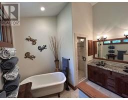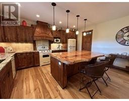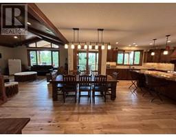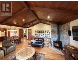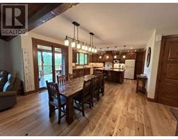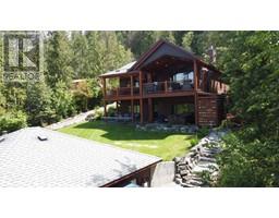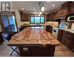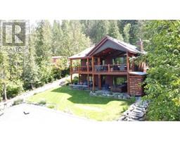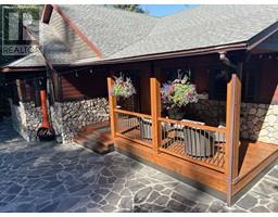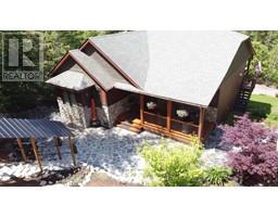 For more info, please click on Brochure button below. Escape to an exquisite retreat at Mabel Lake BC. This luxurious 3012 sq ft home epitomizes elegance & functionality with 4 bedrooms, 3.5 bathrooms, & a walkout basement featuring 9'6"" ceilings & a wet bar. The custom-built kitchen is an entertainer’s dream, showcasing Northstar appliances, custom cabinetry, granite countertops, & a stunning solid wood resin island. Wide plank hickory flooring flows throughout, while every bathroom & shower is adorned with travertine tiles. Comfort & efficiency are paramount, with radiant heating, forced air, & air conditioning ensuring year-round comfort, complemented by a cozy wood-burning stove. The living room & master bedroom feature vaulted ceilings, with the living room further enhanced by beautiful exposed wood beams, creating a rustic yet luxurious ambiance. Designed for ultimate outdoor enjoyment, the home features a west-facing 600 sq ft covered back deck with vaulted ceilings, timber beams, and copper railings, perfect for soaking up the afternoon sun. The 235 sq ft front porch echoes the same exquisite finish. The property is tiered with meticulously crafted rock walls & lush landscaping, complete with an irrigation system. At the front, there is a courtyard with a beautiful flagstone patio, providing an inviting space for outdoor gatherings. Additional highlights include a covered stairwell from the roadside above and convenient road access to the oversized garage below. (id:26472)