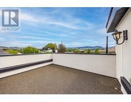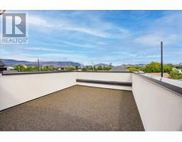 NEW PRICE! Spacious-Brand New-Kelowna South Townhome-Move-In Ready! Blending modern design with contemporary charm, this 3-bedroom, 3-bathroom townhome offers 2001 sq ft of thoughtfully designed living space. Highlights include a private rooftop patio, a spacious front yard with a white privacy fence and a single detached garage. Inside, you’re welcomed by 9-foot ceilings and an open-concept main floor featuring wide plank laminate flooring, custom window coverings and elegant built-in cabinetry throughout. The chef-inspired kitchen boasts a large island with built-in storage, striking two-tone cabinetry, stainless steel appliances, a gas range and a wine fridge—perfect for entertaining! Finishes include white granite countertops, a cozy gas fireplace set against a stylish feature wall and main floor built-in speakers (indoor and outdoor). The primary suite offers a generous sized bedroom with a large walk-in closet and a 5-piece ensuite complete with a freestanding tub and a private water closet. Two additional spacious bedrooms feature TV/media hookups and the same floor laundry room including a stacked washer/dryer with built-in cabinets. Ideally located just minutes from parks, schools, shopping, KGH and the lake this home offers the perfect blend of spacious living, everyday comfort and lifestyle leisure. (id:26472)