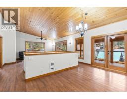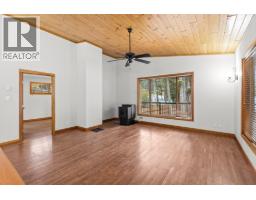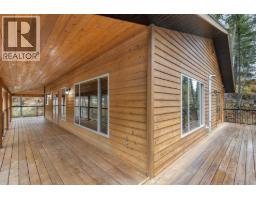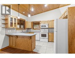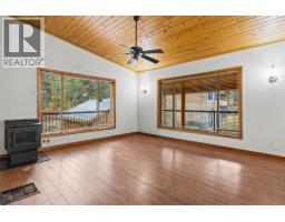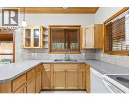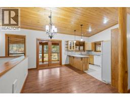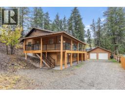 Welcome to this cozy custom-built home, located on generous 0.44 acre lot, close to parks, trails, and recreation, with four bedrooms, three bathrooms, and 2,383 square feet of living space. The main level features open concept living with vaulted ceilings, beautiful wood ceilings, and a full wrap around covered deck. The primary bedroom has a large closet and full ensuite, while a second bedroom and full bath finish his level. Downstairs, the basement has been completely redone with new floors, paint, lighting, and a beautiful bathroom with dual vanities. This level is roughed in for a suite with separate entrance, so there is great income potential. There is an oversized detached double garage + limitless outdoor parking, perfect for all the cars, toys, and storage. Well maintained exterior with beautiful woodwork and beams, and a long-lasting metal roof. A great property for those who want a lot of space, a lot of privacy, income potential, and beautiful natural surroundings. (id:26472)