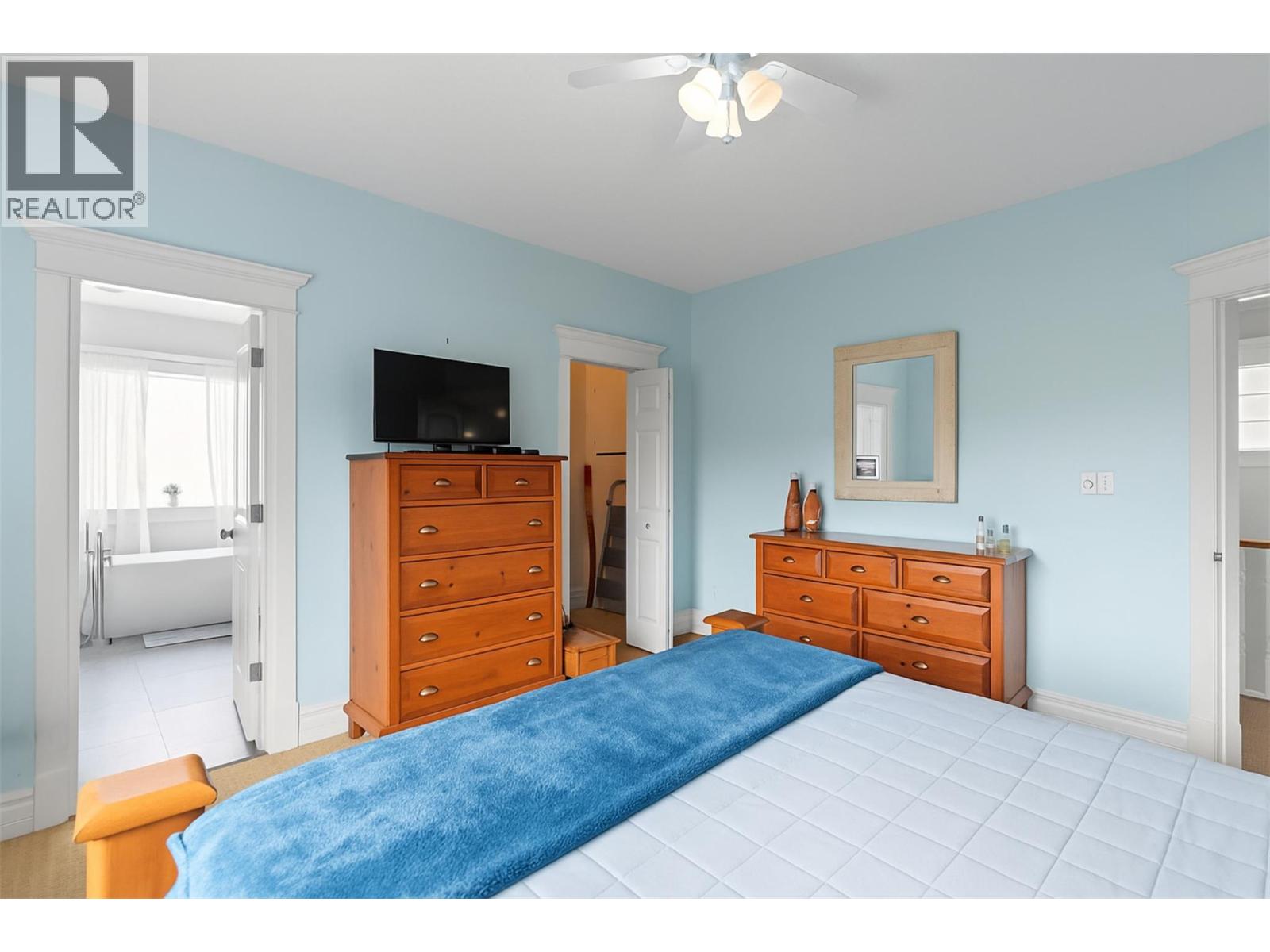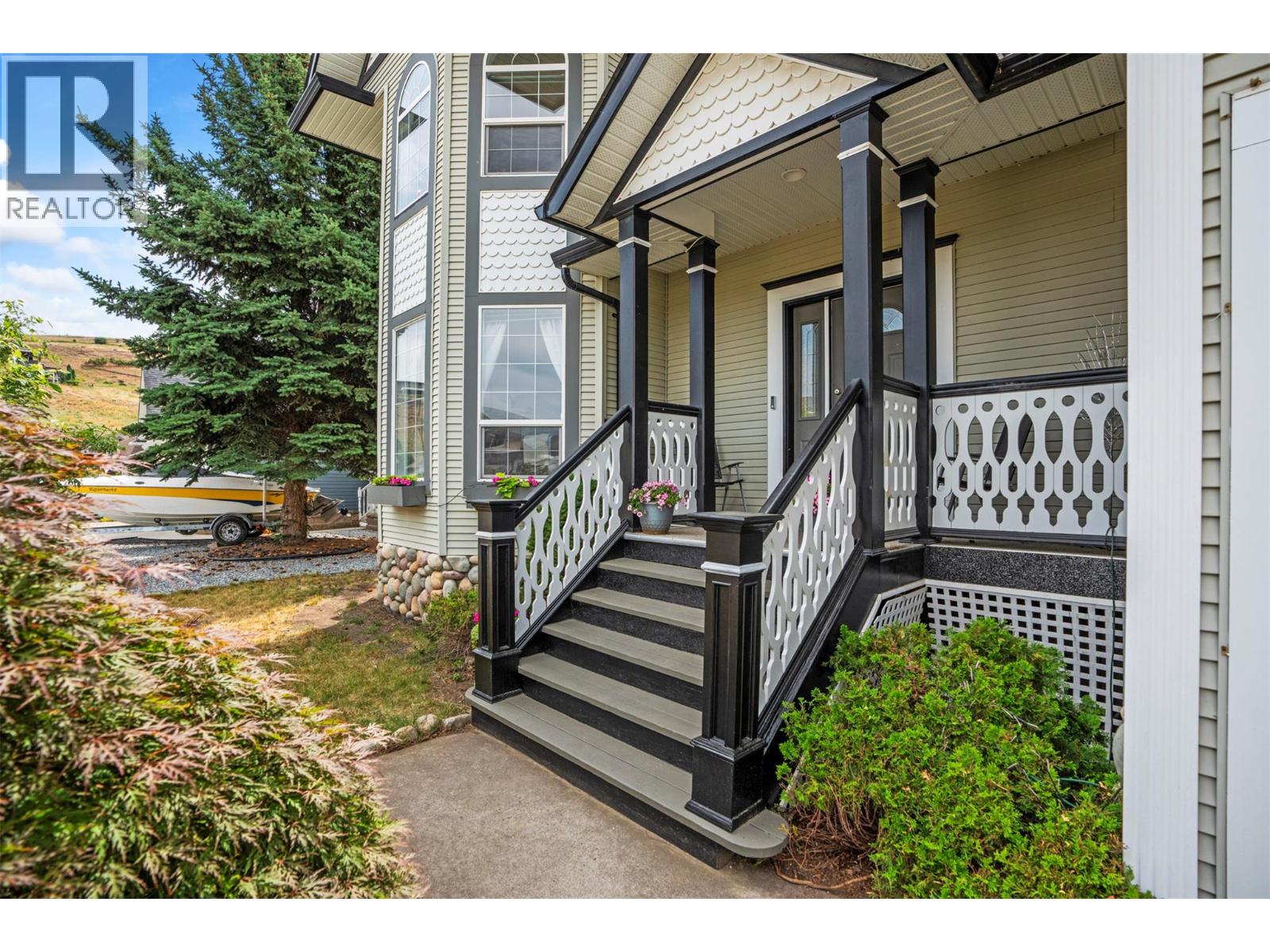 Step into bright, airy elegance at 859 Mt Bulman Place, nestled in Vernon’s coveted Middleton Mountain. This beautifully updated 5-bedroom, 4-bathroom home welcomes you with a soaring two-storey entryway that immediately sets the tone for its open and inviting layout. Perfectly situated with no rear neighbours, the serene property backs directly onto a peaceful conservation area, offering uninterrupted mountain views and lasting privacy. Inside, enjoy copious recent upgrades; from refinished flooring and replaced carpeting, to the recently replaced furnace and hot water tank, this property comes stress free. The main level boasts fresh paint, a cozy natural gas fireplace, and a spacious bonus room, ideal for a multitude of uses. The kitchen is a chef’s delight with a newer 36-inch professional gas range, and flows into a four-season room with skylight, the perfect sunny retreat. Upstairs, the primary suite features serene views of the conservation area and a fully renovated ensuite bathroom with a freestanding tub and glass-walled shower. Two more bedrooms and a full bath complete the upper level. Downstairs, the finished basement offers two additional bedrooms and two bathrooms, ideal for guests or extended family. With central air, a double attached garage, irrigation, and municipal water, this home offers comfort (id:26472)