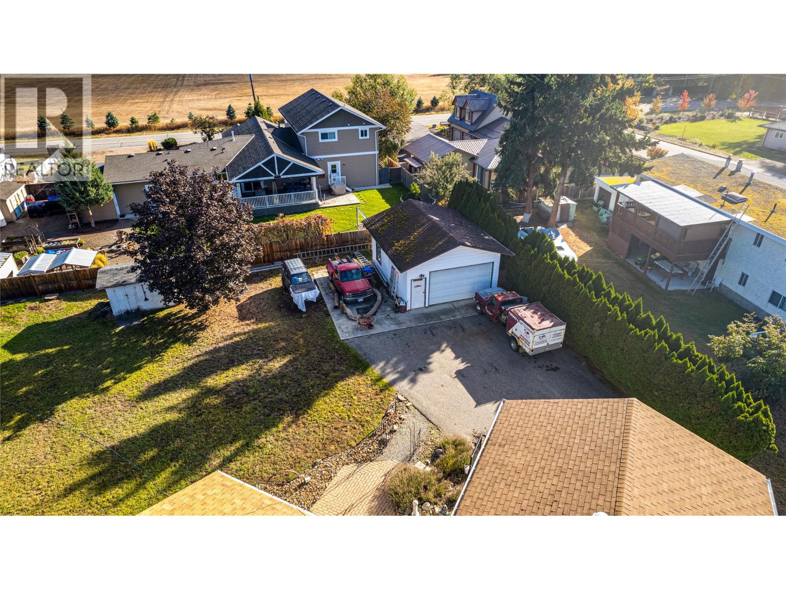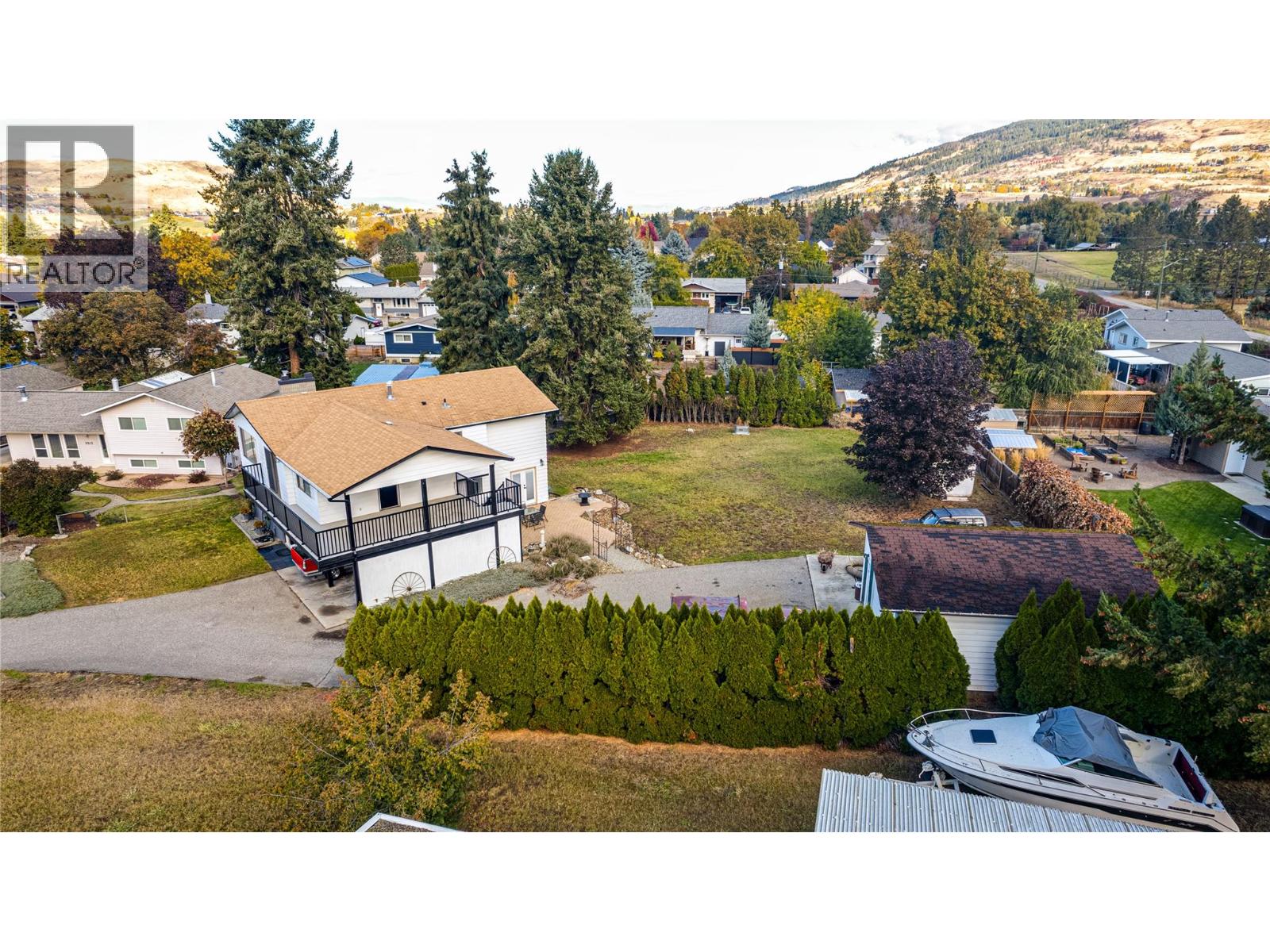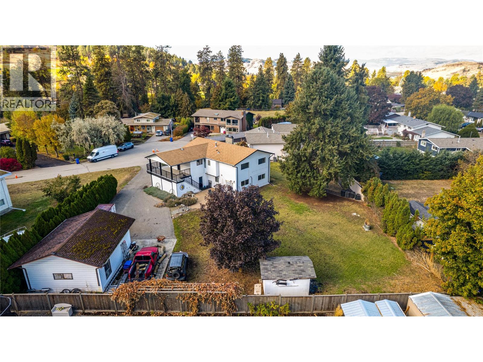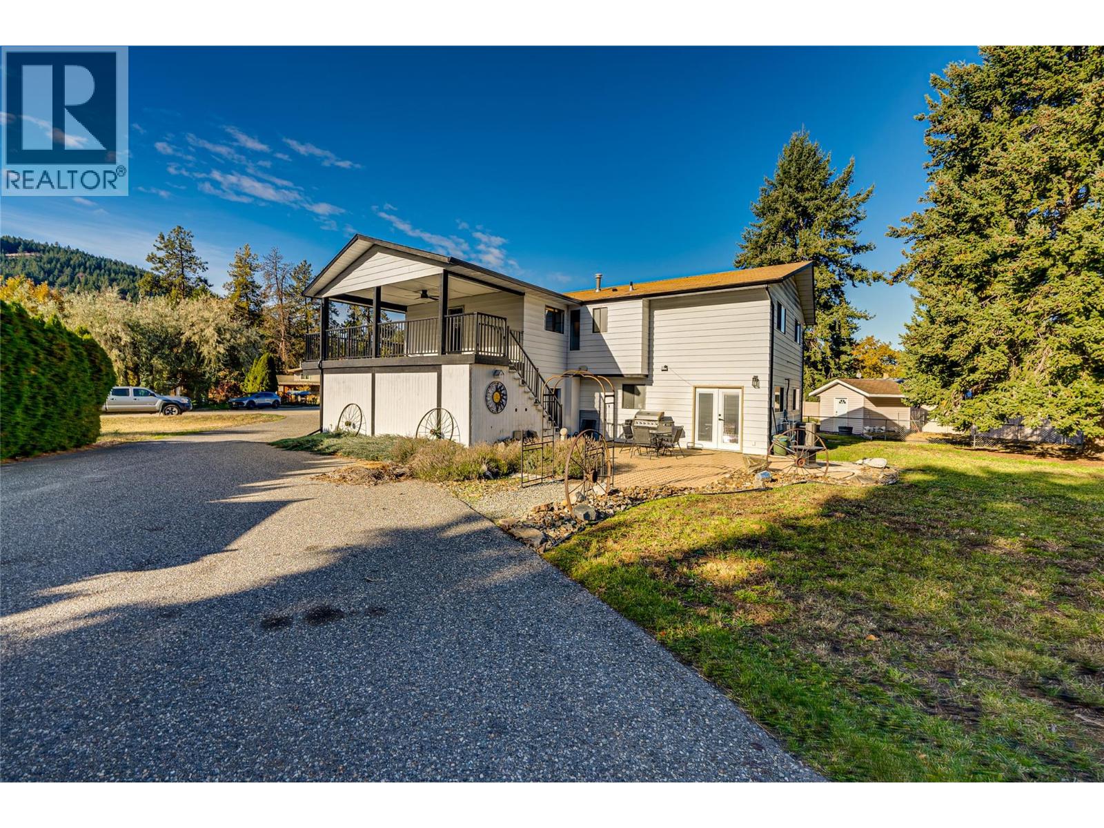 First time on the market! This partially updated home sits on a spacious 0.35-acre lot in the highly desirable Coldstream area, tucked away on a quiet cul-de-sac. The property features an oversized 23’ x 20’ garage/shop, plenty of parking, and a 1-bedroom + den suite, perfect for extended family or rental income. The main floor offers a bright, welcoming layout with a primary bedroom and ensuite, plus two additional bedrooms and a full bath. The kitchen includes a cozy breakfast nook, with the dining and living rooms just steps away. Step out onto the large L-shaped deck to enjoy peaceful views of the surrounding neighbourhood. On the entry level, you’ll find laundry for the main floor, as well as access to the suite, which includes its own laundry, one bedroom, a den/office area, two storage rooms, a compact kitchen, and full bathroom. The property also includes a 7’ x 12’ storage shed, offering extra space for tools or seasonal items. A wonderful opportunity to settle into one of Coldstream’s most sought-after neighbourhoods, spacious, versatile, and ready for its next chapter. (id:26472)
