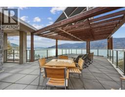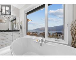 View! View! View! Must be seen to appreciate this spectacular 180-degree view. Car enthusiasts will love the 4-car gas-heated garage, including an RV bay with elevated ceilings (12.5'Hx31.5'D), water bib, dedicated power (20 amp), EV charger, and epoxy flooring—a rare find. Luxury, comfort, and craftsmanship converge in this stunning 6-bed, 4-bath residence in the prestigious Lakestone community. This home is built on an extra-wide lot, in a very quiet neighbourhood on a no-through road, only 8 minutes from Kelowna International Airport and 5 minutes to shopping. Built in 2018, this home offers a bright open-concept design with the primary suite conveniently located on the main level. Large windows frame panoramic views of Okanagan Lake, enhanced by power blinds throughout the living and dining areas for effortless light and privacy control. Step outside to the oversized fully-covered deck, complete with three motorized phantom screens, creating the ideal outdoor living experience in every season. The lower level features a spacious family room, wet bar, and walk-out patio with a hot tub, perfect for hosting and everyday relaxation. Located steps from trails and the award-winning Lakestone Club amenities, including two pools, two fitness centres, tennis and pickleball courts, this home delivers the elevated Okanagan lifestyle so many seek. This property truly needs to be experienced in person—book your private viewing today. (id:26472)
