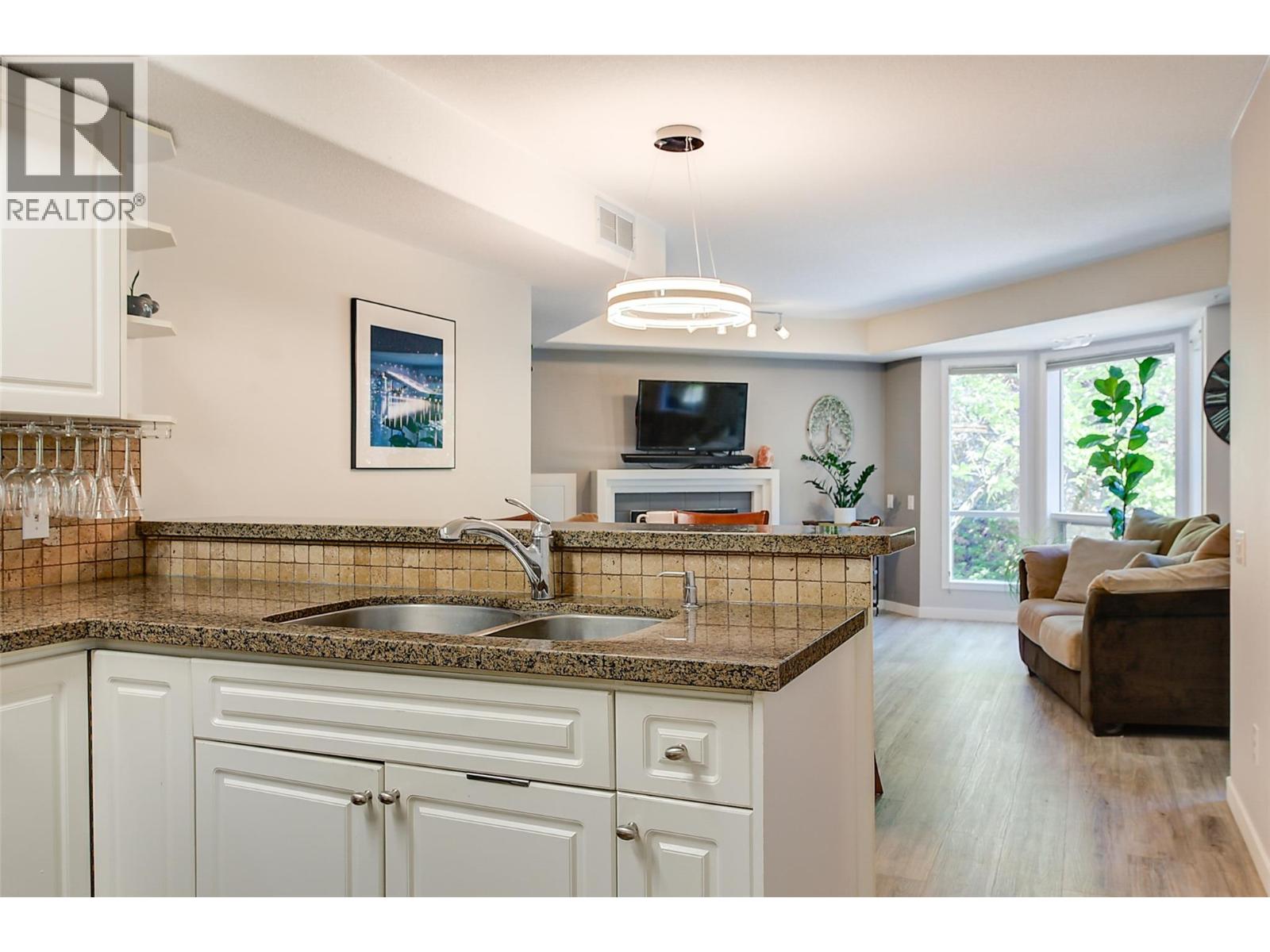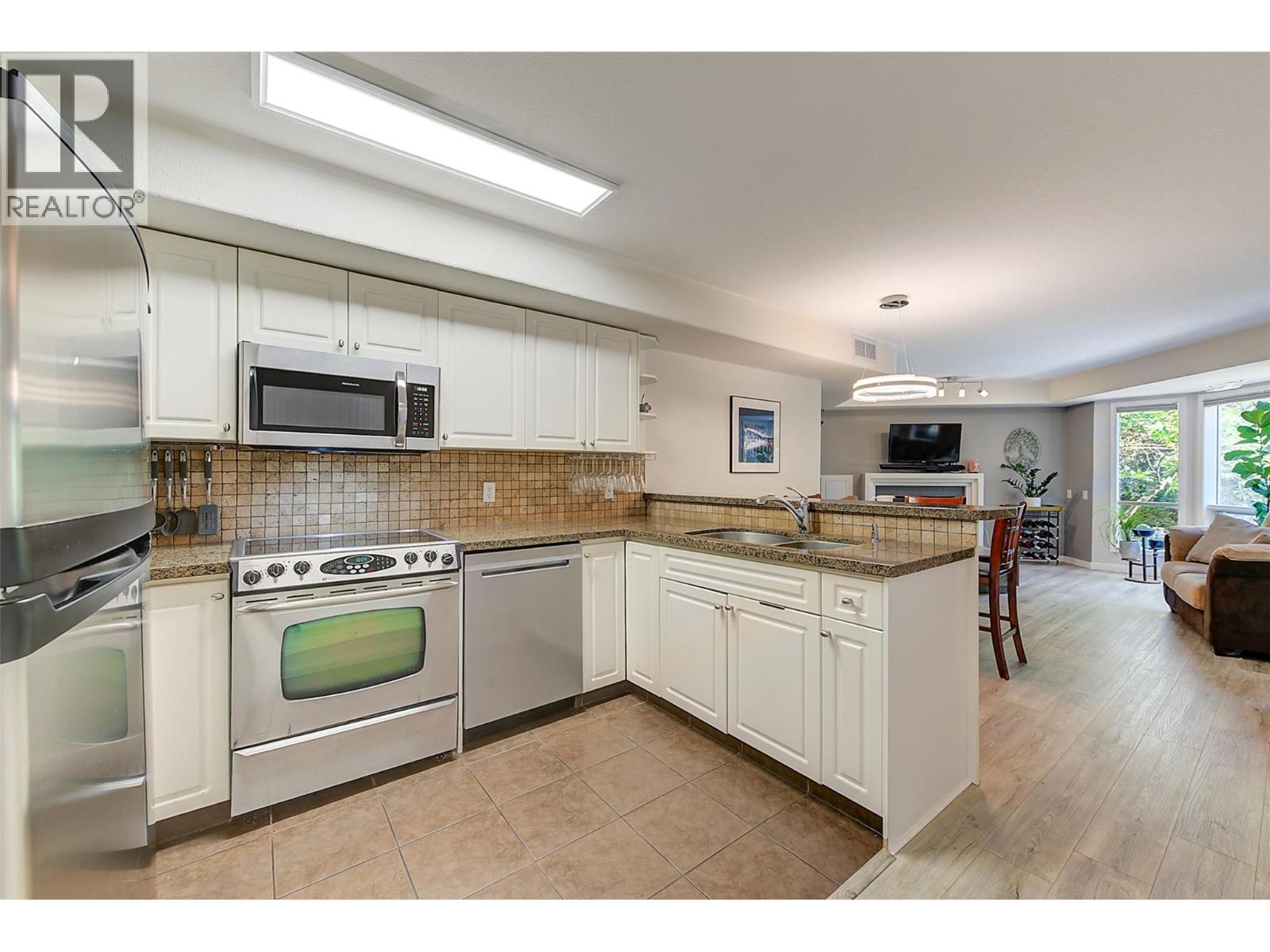 $425.09 MonthlyNature out your window, the city at your doorstep—welcome to Cascade Falls! The perfect blend of location & lifestyle, this 2-bedroom, 2-bathroom condo offers a thoughtfully designed layout with approximately 1,018 sqft of living space. Located on the quiet side of the building, the open-concept kitchen features granite counters, stainless steel appliances, ample cabinet storage & a sit-up bar for two with extensive vinyl plank flooring. A formal dining area flows seamlessly into a cozy living room with a gas fireplace & access to a covered balcony—perfect for morning coffee or summer BBQs with friends & family! The oversized primary bedroom includes balcony access, a generous walk-in closet & a 4-piece ensuite. The second bedroom is smartly outfitted with a built-in desk & wall bed, ideal for guests or a home office setup & is adjacent to the main 4-piece bathroom. You'll also find a dedicated laundry/pantry room off the kitchen with freezer for added convenience & storage. This condo comes complete with 1 secure underground parking stall, 1 large storage locker & has a new furnace/AC unit (2024)! The pet-friendly strata features mature landscaping & is just steps from Dilworth Soccer Park & nature trails. Live above the city, but never far from it—Dilworth Mountain is located in the heart of Kelowna just 10-15 mins to everything you need—UBCO, YLW Orchard Park Mall, groceries, restaurants, big box stores, the Okanagan Rail Trail, Glenmore & more! Move in & enjoy this fall! (id:26472)