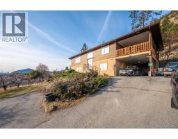 Panoramic views overlooking a small apple orchard on 4.73 acres with loads of privacy. This home has been well looked after with newer roof, large picture windows showing off the expansive lake and valley views, heat pump and more. This home is laid out for the whole family with 5 bedrooms and 3 bathrooms or could be perfect for a separate two bedroom in-law suite. Backs onto Giants Head Mountain Park. Minutes to town. Apple orchard leased out until November 2025. **Measurements taken from iGUIDE, Buyer to verify. (id:26472)