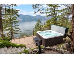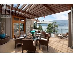 $2,547.29 MonthlyPerched above the shoreline in the exclusive Outback community, this one-of-a-kind cantilevered lakefront home is a West Coast-inspired masterpiece that blends bold architecture with the serenity of nature. Crafted into the rocky knoll, the 5 bedroom, 4 bathroom custom residence offers 3,423 sq.ft. of thoughtfully designed living space and over 1,200 sq.ft. of multilevel outdoor terraces, all with panoramic lake views. Vaulted timber ceilings, expansive windows, and organic materials create a seamless connection between indoors and out. The chef’s kitchen features brand-new Sub-zero appliances and a one-of-a-kind burl piece from California’s iconic Redwood forest, while the living room and primary suite are both framed by uninterrupted vista views of Okanagan Lake. Luxurious features include a lakeside hot tub, media room, multiple lounging decks, and a lower-level recreation room—perfect for entertaining or unwinding in privacy. 3 owned parking stalls as an added bonus. As part of The Outback’s resort-style community, enjoy access to the private marina, two sandy swimming bays, tennis courts, two pools with hot tubs, a fitness center, and a lakeside fire pit lounging area adjacent to the rare salmon spawning bay. Surrounded by protected parkland, this is a true retreat for those seeking immersive natural luxury. Enjoy direct access to scenic hiking and biking trails and take advantage of the close proximity to the neighboring resort community of Predator Ridge. (id:26472)