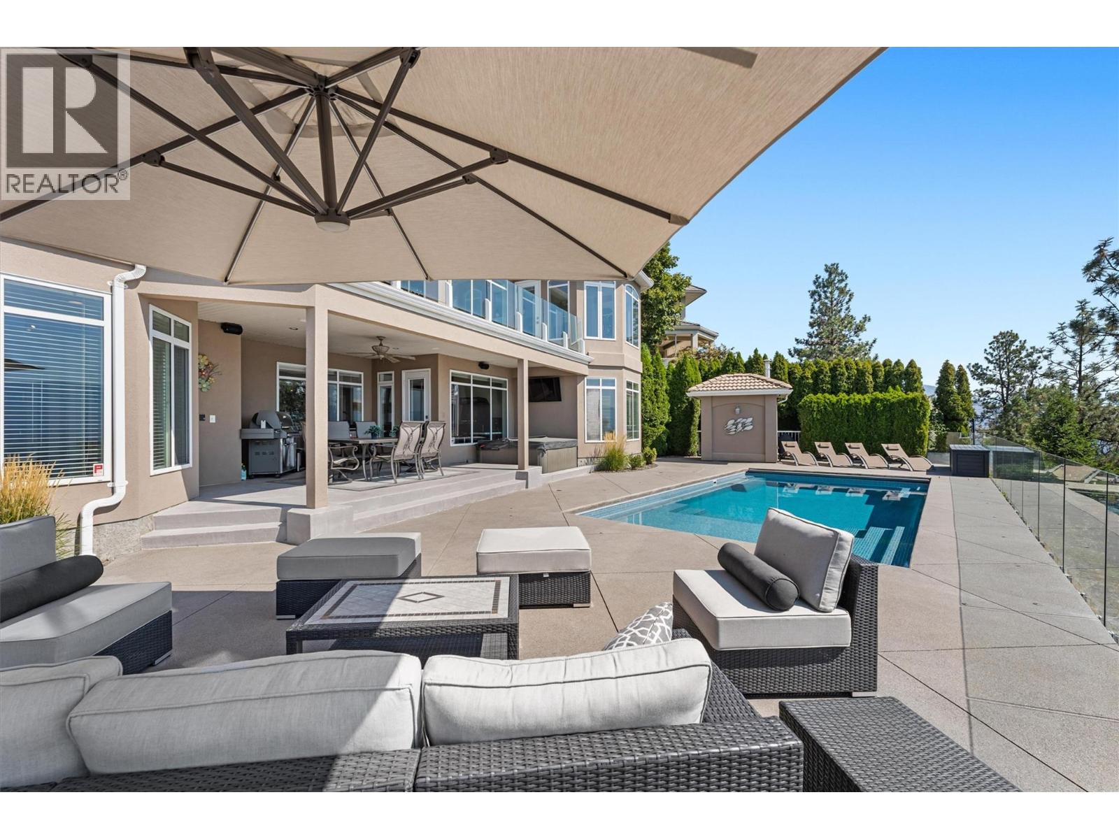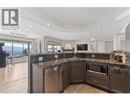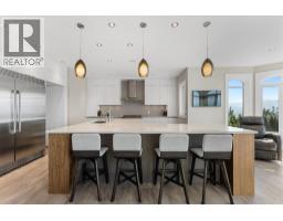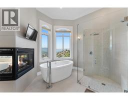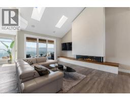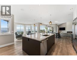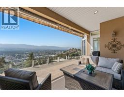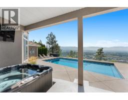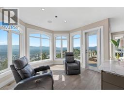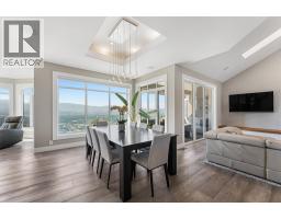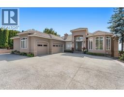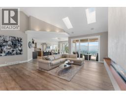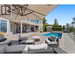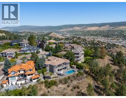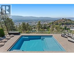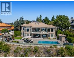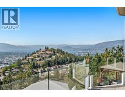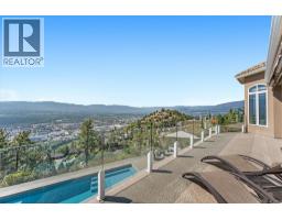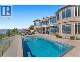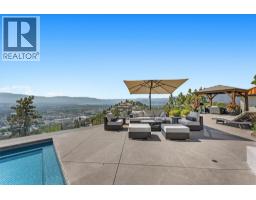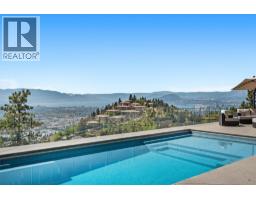 Elevated above the city on one of Kelowna’s most desirable streets, this renovated Dilworth Mountain residence sits on a large, private lot and offers front-row views of Okanagan Lake, the valley, and downtown. Walls of windows, skylights, and soaring ceilings fill the home with natural light, while thoughtful updates blend timeless elegance with modern luxury. The main level is designed for entertaining with an expansive open concept plan. A statement living room with gas linear fireplace connects to the dining area and chef’s kitchen. The kitchen features quartz counters, a striking L-shaped island, professional-grade Thermador appliances, and a hidden servery with wine storage and built-in desk. The primary suite is a retreat of its own—complete with fireplace, walk-in closet, and spa-like ensuite where the freestanding soaker tub captures unobstructed valley views. The lower level is ideal for hosting family and guests with a large rec room and wet bar, media room, gym, den, and four additional bedrooms. Glass doors lead to the backyard oasis where a stunning tiled pool, hot tub, gazebo, and multiple lounging areas create resort-style living at home. The large level driveway offers ample parking which leads to an oversized 3-bay epoxy-finished floor garage, complete with extensive storage space. This property represents a rare opportunity to the best of Kelowna living – panoramic views, exceptional design , and professionally landscaped private grounds , set in an enviable location! (id:26472)